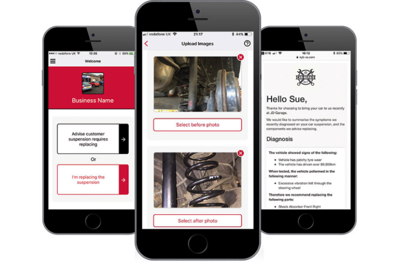 KYB hat zu diesem Zweck die KYB Suspension Solutions App entwickelt. Bei der Identifikation von Fahrwerksproblemen kann der Techniker bzw. der Kundendienstberater mit dem Smartphone ein Bild von der defekten bzw. verschlissenen Komponente erstellen. Danach kann über die App der entsprechende Verschleiß bzw. Defekt ausgewählt und dem Kunden eine personalisierte SMS gesendet werden.