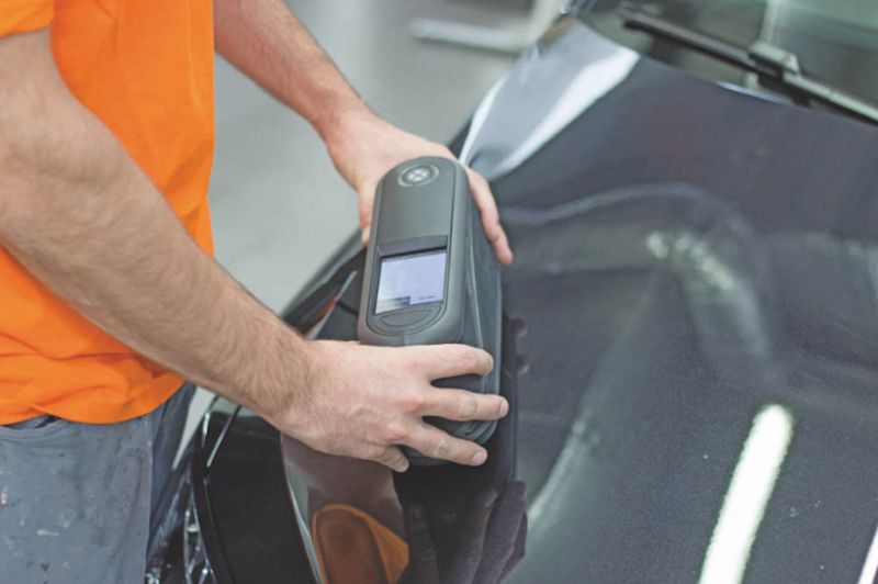 Neben dem Vorteil, dass Glasurit bei VW gelistet ist, schätzen die Profis bei Decker unter anderem die moderne digitale Farbtonfindung. "Das Ratio Scan 12/6 verfügt über integriertes Licht mit weißen und blauen LEDs, misst 12 Geometrien und besitzt eine integrierte Kamera zur Kratzer-Kontrolle", erklärt Glasurit-Kundenbetreuer Martin Kanizsaj. "Zur Farbtonfindung arbeitet das Gerät mit zuverlässigen, von BASF patentierten Algorithmen, und es greift auf die weltweit größte Farbtondatenbank zu." Aber nicht nur die Farbtonfindung wird digital, auch in der internen Kundenabwicklung sorgt Vernetzung für effizientere Abläufe und lückenlose, reparaturbegleitende Dokumentation. Gleichzeitig schätzen die Lackierer um Standortleiter Harald Ruzicka auch die analogen Qualitäten: "Glasurit ist ein guter Partner, schnell erreichbar, und wenn nötig, ist ein Techniker auch schnell bei uns vor Ort."