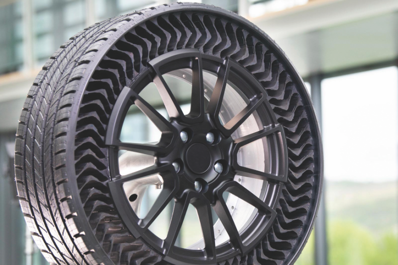 Selten, aber um soärgerlicher gehört die Reifenpanne zu den Erlebnissen beim Autofahren. Auch die Kontrolle und das Nachfüllen des Luftdrucks ist die Aufgabe des Fahrers. Plötzlicher Druckverlust kann zudem zu gefährlichen Situationen im Straßenverkehr führen. Mit dem Uptis (Unique Puncture-proof Tire System)hat Michelin einen Reifen gänzlich ohne Luft entwickelt.
