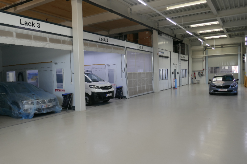 Somit wurde ein optimaler logistischer Kreislauf geschaffen. "Dank der detaillierten Planung und der konstruktiven Zusammenarbeit mit PPG konnte das Projekt verwirklicht werden und hat sich als sehr effizient erwiesen", sagt Gert Puck. Das neue Lackierzentrum mit 2 vollwertigen Kombi-Lackierboxen, 4 Multifunktionsboxen, mehreren Vorbereitungsplätzen, einem modernen Mischraum samt Moon-Walk und Daisy Wheel gleicht einem Reinraum, um Lackierungen auf höchstem Niveau zu erzielen.
