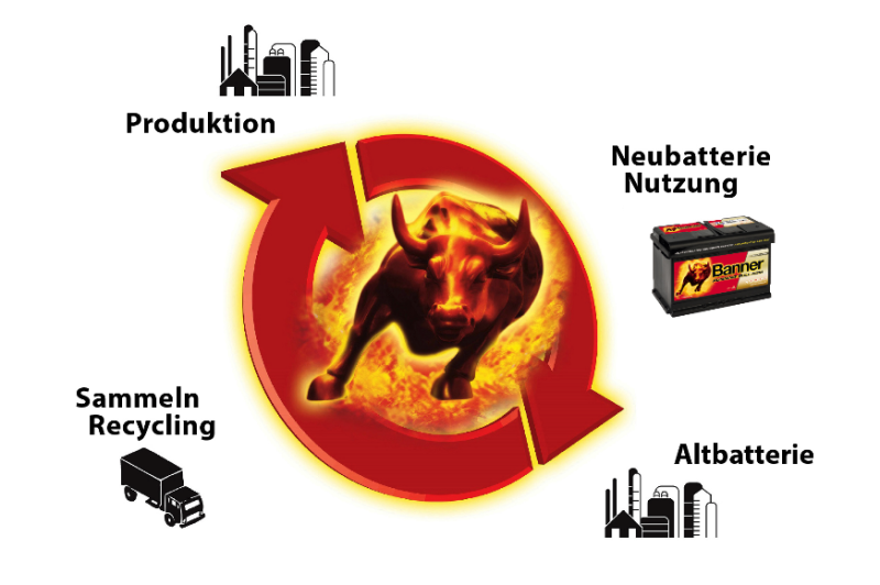 Doch zurück zum Recycling: In den vergangenen 25 Jahren konnte das Umweltforum Batterien, bei dem Banner eines der Gründungsmitglieder ist, in Österreich etwa 20 Millionen verbrauchte Fahrzeugbatterien sammeln. Dadurch wurden 210.000 Tonnen Blei recycelt. 95-98 Prozent des Bleis einer neuen Batterie wurden bereits zuvor mindestens einmal verwendet, und die Batteriekästen stammen zu 80 Prozent aus recyceltem Polypropylen.