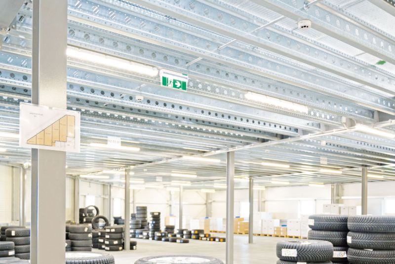 Eine 2-geschoßige Stahlbaubühne mit einer Fläche von je 1.000 m² sowie ein weiteres 3-geschoßiges Lager für Ersatzteile wurden errichtet. "Das sind insgesamt 2.300 m2 Zwischendecken mit einer Tragkraft von 1.000 kg/m2", rechnet Zintl vor und erwähnt nebenbei die 4.500 Fachböden und 200 Schubladen, in denen bis zu 5.000 Kleinteile Platz finden.