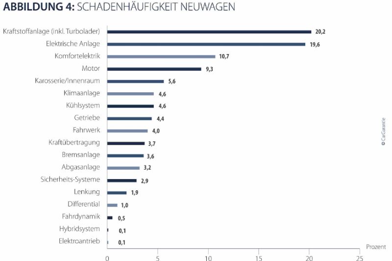 Für Peter Bachmaier, Direktor Vertrieb Importeure, Banken, Versicherungen Car-Garantie, und Christian Rothböck, Direktor Vertrieb Handel, ist klar: "In den letzten fünf Jahren haben sich die durchschnittlichen Kosten um insgesamt 15 Prozent erhöht. Für Handel und Fahrzeugbesitzer sind diese Zahlen ein klares Signal, sich gegen Schäden abzusichern." Bei der Schadenregulierungssumme zeige sich das gleiche Bild wie 2019: Bei den Gebrauchtwagen steht auf Platz 1 der teuersten Schäden mit 23,6 %(Vorjahr: 23,7 %) weiterhin der Motor vor der Kraftstoffanlage inklusive Turbolader mit 18,8 %(Vorjahr: 18,4 %). Bei den Neuwagen führt der Motor die Liste der teuersten Schäden mit einem nahezu unveränderten Anteil von 21,4 %an (Vorjahr: 21,5 %), gefolgt von der Kraftstoffanlage mit 20,7 %(Vorjahr: 20,1 %) und der elektrischen Anlage mit 12,0 % (Vorjahr: 11,0 %).