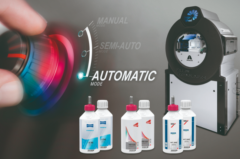 Nach den ersten beiden "Daisy Wheels", die als halbautomatische Mischsysteme einen Schritt in die Zukunft des Lackierens darstellten, steht nun mit der Version 3.0 eine vollautomatische Lösung am Start. MMst. Gerhard Steinbock, Axalta Refinish Produkt und Coloristik Manager: "Das wird durch vorbefüllte Flaschen erzielt, welche eine Feindosierung auf bis zu 0,05 Gramm ermöglichen. Die neue Generation macht die Farbtonmischung präzise, sauber und reduziert Materialabfall. Das System kann man sogar ganz ohne Mischbank einsetzen." Angeboten werden die Basislacke Cromax Pro, Permahyd Hi-TEC 480 und Standoblue. Das Daisy Wheel 3.0 ist mit dem cloudbasierten digitalen Farbtonmanagement kombiniert, was die die Prozesszeiten um bis zu 50 Prozent herunterschraubt und das Verfahren außerdem einfacher und sicherer macht.