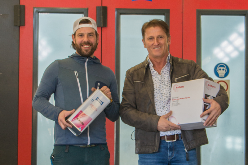 Kürzlich wechselte Moser die Lackmarke und entschied sich für Standox von Axalta Refinish. "Ich habe angefragt, ob ich eine Produktvorführung machen kann", erinnert sich Kundenberater Walter Ogris. "Dabei waren der Chef und sein Team schnell von den Vorzügen des Systems überzeugt, nicht zuletztdavon, wie gut und genau die digitale Farbtonmessung arbeitet." Ein weiterer dieser Vorzüge ist die Variabilität, welche die Produkte bieten. Muss es schnell gehen, lässt sich vom Füller bis zum Klarlack alles in einem Arbeitsgang ("one visit application") ohne Ablüften erledigen. Hat man mehrZeit, kann man außerhalb der Box trocknen. Moser: "Das geht zack-zack, für uns bedeutet das, dass wir pro Tag ein Auto mehr machen können." Oft schalte er die Kabinenheizung früher aus, was wiederum Energie spare. Gerade in Zeiten explodierender Energiepreise ist das mehr als nur ein Öko-Effekt. "Die extrem schnelle oder energiesparende Trocknung wird mit der patentierten Axalta-Lacktechnologie ohne zusätzliche technische Hilfsmittel oder Geräte erreicht -sozusagen Lack only", so Ogris selbstbewusst. Neben Standox-Lacken wird im Betrieb auch das Audurra-Zubehörsortiment verwendet, welches laufend erweitert wird. "Der Katalog wird von Jahr zu Jahr dicker", so Ogris.