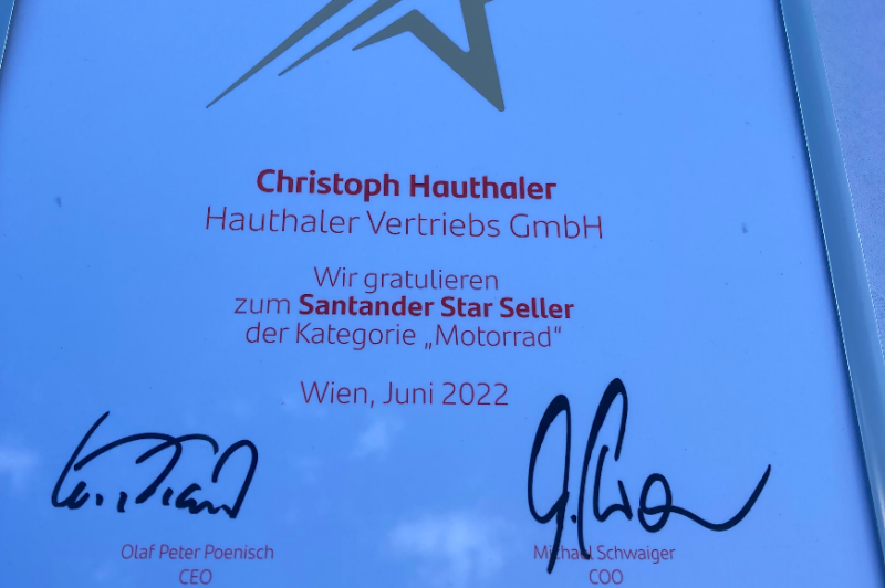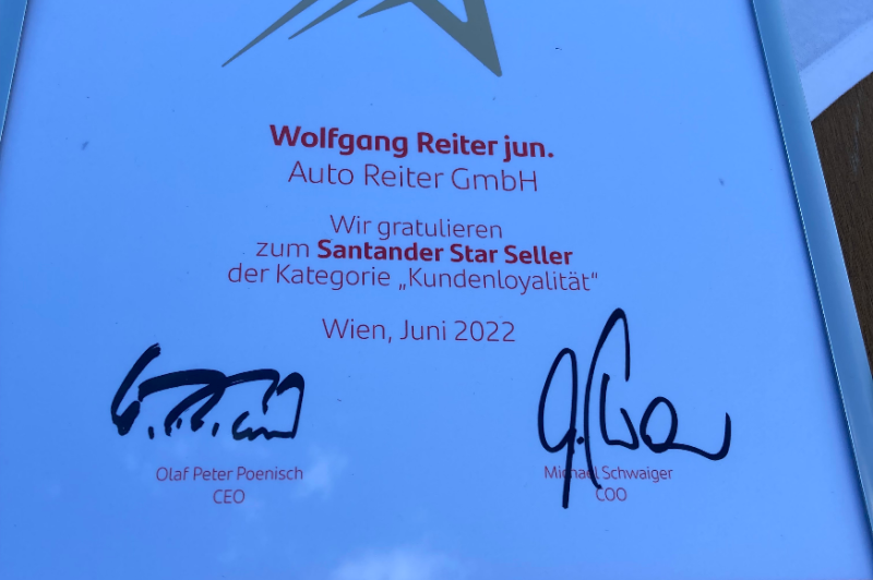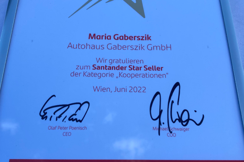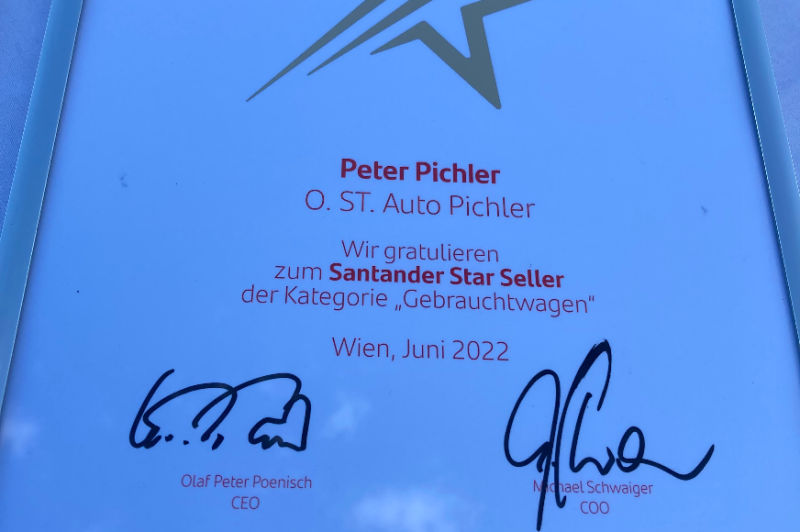 Der Wettergott meinte es am 23. Juni gut: Denn über dem Salzkammergut, sonst oft für viel Regen bekannt, strahlte die Sonne über den Siegern – und der laue Abend war perfekt für die Ehrung: Wie jedes Jahr hatte eine Jury Vorschläge für die Auswahl der „Star Seller“ unterbreitet, über die dann unter den Kunden von Santander abgestimmt wurde. Insgesamt waren mehrere Dutzend Auto- bzw. Zweiradhäuser aus ganz Österreich nominiert.