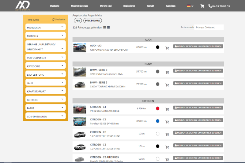 Qualitätsfahrzeuge zum besten Preis: Das ist der Anspruch von Auto Declic, der seit 2005 bestehenden Verkaufsplattform für neue und gebrauchte Fahrzeuge im B2B-Bereich aus Frankreich. Die Einkaufsabteilung von Auto Declic ist immer auf der Suche nach potenziellen Fahrzeugen und bietet nur Autos von vertrauenswürdigen Partnern an, um einen Reibungslosen Ablauf zu gewährleisten.