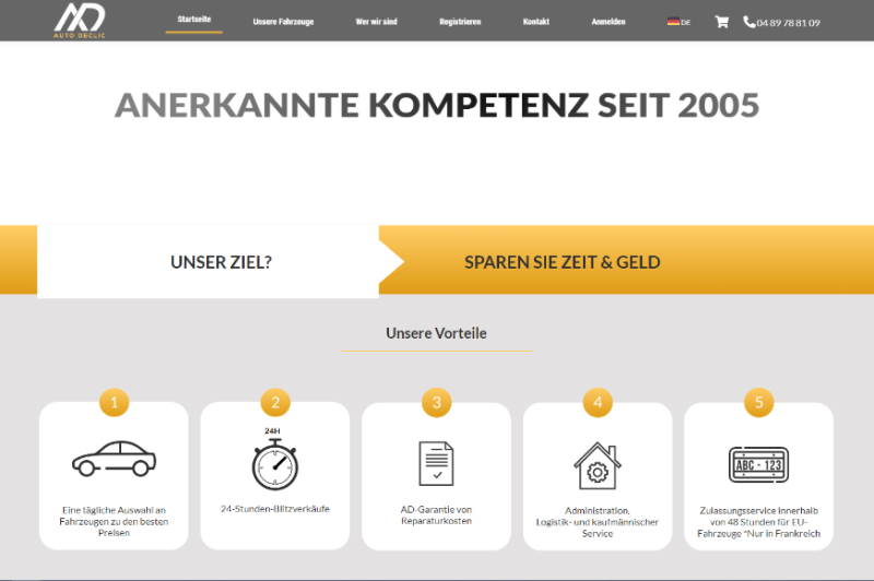 Auf der Website von Auto Declic finden sich: