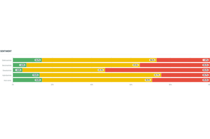 Für diese Analyse wurde die österreichische Online-Medienlandschaft im Zeitraum vom 1. Juli 2021 bis 30. Juni 2022 ebenso ausgewertet wie der österreichische Social-Media-Bereich. Als Suchbegriffe wurden Autos in Verbindung mit Elektroantrieb, Benzinantrieb, Dieselantrieb, Hybridantrieb sowie sonstige Berichte über das Auto eingegeben. Laut Klara Spiegel, BSc. vom „Observer“ wurden innerhalb dieser 12 Monate 312.900 Onlineclippings in Österreich (davon 88.500 Social Media Postings) zu „Autos“ veröffentlicht, wovon 79.000 der Clippings sich auf eine oder mehrere Antriebsmöglichkeiten bezogen.