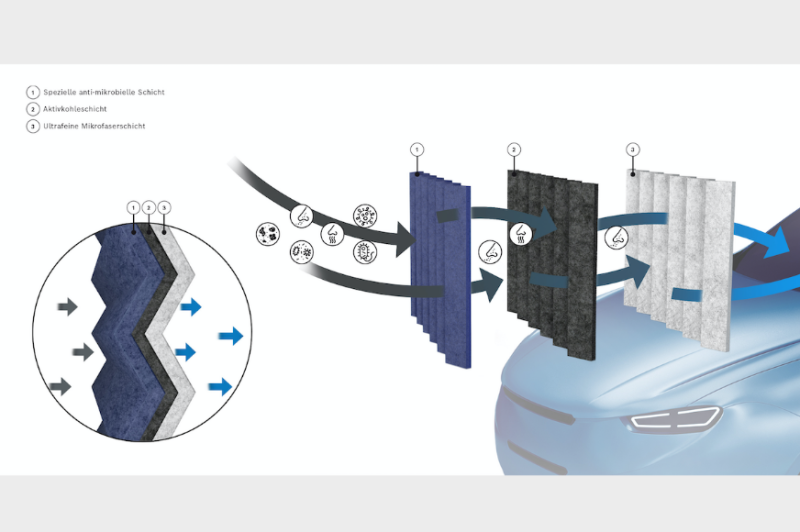 Der neue Innenraumfilter ist Nachfolger des Filters+ von Bosch, der Allergene und Pollen bindet, Feinstaubpartikel sowie schädliche Gase ausfiltert und auch gegen Bakterien effektiv wirkt. Die jetzt verbesserte Generation Filter+pro sei, so Bosch, darüber hinaus hochwirksam gegen Viren und Schimmelpilzwachstum. Bis Ende 2023 werde der Filter+pro seinen Vorgänger im gesamten Lieferprogramm von Bosch ersetzen.