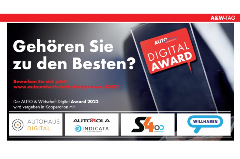 Auch heuer werden die besten Digital-Kampagnen und -Aktionen ausgezeichnet. Nehmen Sie Teil und reichen Sie Ihre Kampagnen, Fotos, Websites und Aktionen unter www.autoundwirtschaft.at/digitalaward2022 bis 20. Oktober ein.
