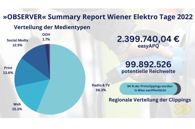 Laut Auswertung des „Observer“, die dem A&W Verlag in Absprache mit der Porsche Media & Creative GmbH exklusiv zur Verfügung gestellt wurde, entfielen 56,3 Prozent der Kontakte auf Radio und TV, gefolgt von 15,3 Prozent im Web und 13,6 Prozent in Printmedien. 12,5 Prozent wurden im Bereich Social Media registriert, der Rest von 1,7 Prozent im Sektor OOH („Out-of-Home“, Außenwerbung). 94 Prozent der Clippings in den Printmedien wurden in Wien veröffentlicht. Der „easyAPQ“ wurde vom „Observer“ mit knapp 2,4 Millionen Euro berechnet. Das ist der Vergleichswert, wenn man den Artikel in Relation zum Satzspiegel, multipliziert mit dem Anzeigenpreis pro Seite, berechnet. Die potenzielle Reichweite der Aktivitäten lag bei knapp 100 Millionen Personen, genauer gesagt bei 99.892.526.