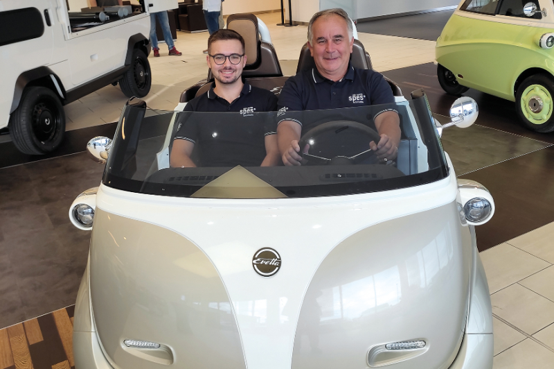 Neben dem XBUS verkauft Spes auch die 2,45 Meter lange, elektrisch betriebene Evetta: Das Fahrzeug im Stil der 1950er-Jahre (BMW Isetta) hat eine Höchstgeschwindigkeit von 90 km/h und eine Reichweite bis zu 240 Kilometer. „Das ist ein komplett neues Segment, das bisher noch nicht besetzt wurde“, sagt Philipp Spes. „Wir glauben, dass dieser Bereich enormen Aufschwung bekommen wird. Retro ist ja voll im Trend, und vor allem für Jugendliche ist dieses Auto ideal.“ Erstbestellungen sind möglich, wenn eine Reservierungsgebühr in Höhe von 10 Prozent des Kaufpreises (also 1.954 Euro) hinterlegt wird.