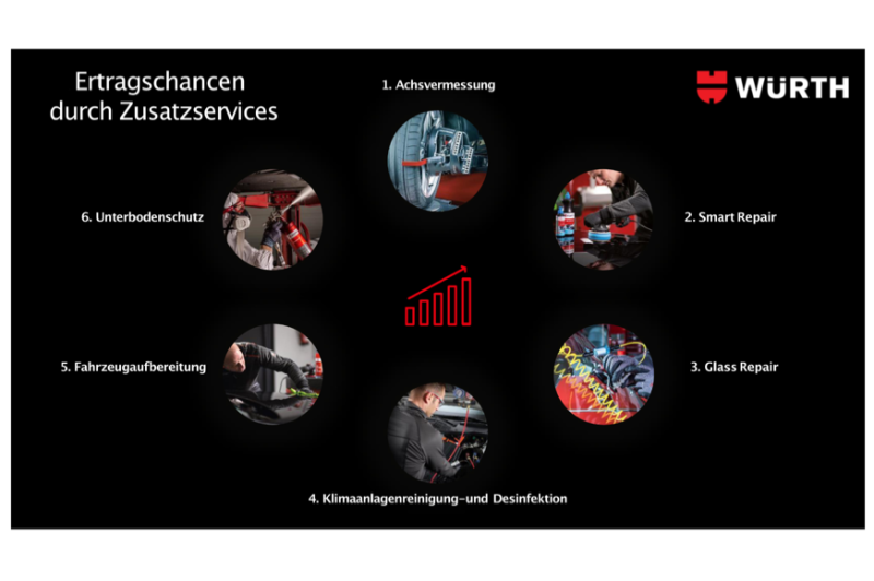 Neben den aktuellen Entwicklungen, Trends und Herausforderungen im Reifengeschäft wurde im A&W-Expertentalk „REIFEN“ in Kooperation mit Würth auch das Potenzial in diesem Bereich herausgearbeitet. Wie Florian Andrä, Spezialist für Werkstattausrüstung bei Würth erklärt, bietet – bei der richtigen Organisation und strukturierten Prozessen – nicht nur der Rädertausch selbst eine interessante Ertragsmöglichkeit, sondern auch der zusätzliche Kundenkontakt, der zweimal pro Jahr stattfindet. „Dabei gibt es gleich mehrere, zusätzliche Ertragschancen“, weiß Andrä. Zusammengefasst unter dem Begriff „antriebsneutrale Tätigkeiten“ gibt es mehre Bereiche, die – auch bei der wachsen Elektromobilität – Werkstattauslastung und Zusatzerträge bringen.