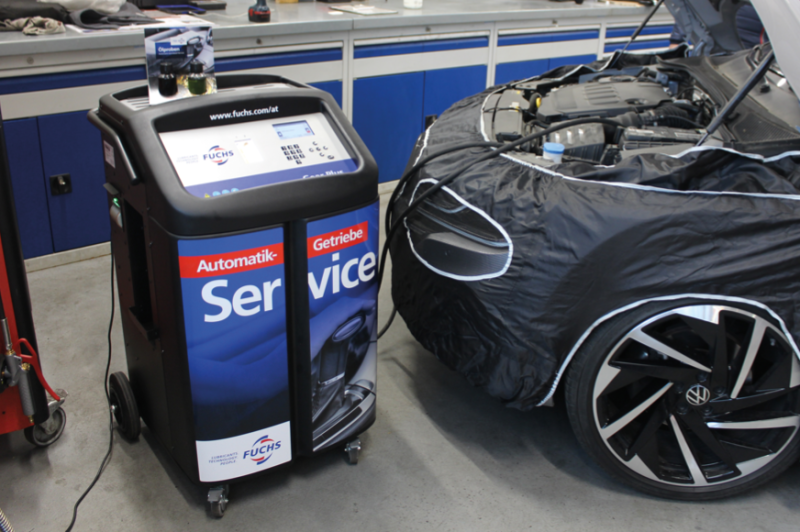 Die Firma Hofbauer verfügt über Markenverträge mit VW, Audi und VW-Nutzfahrzeuge sowie mit Škoda (am Standort St. Pölten). Darüber hinaus gibt es einen Servicevertrag mit Seat und in Kürze auch mit Cupra. In der Werkstatt in Kapelln arbeitet Hofbauer seit Mitte 2021 im Bereich des Automatik-Getriebe-Services mit Fuchs Schmierstoffen. „Aufgrund der wachsenden E-Mobilität müssen wir neue Zusatzgeschäfte aufbauen, brauchen bessere Lösungen und noch höhere Kundenorientierung“, so Berger, der auf der Suche nach einer hochwertigen Lösung für Automatik-Getriebe war: „Wir möchten das Getriebe spülen, nicht nur das Öl wechseln.“ Dabei hat das Premium-Gesamtpaket von Fuchs überzeugt. „Fuchs hat die passenden Produkte, ein hochwertiges Gerät und die entsprechende Beratung“, so Berger.