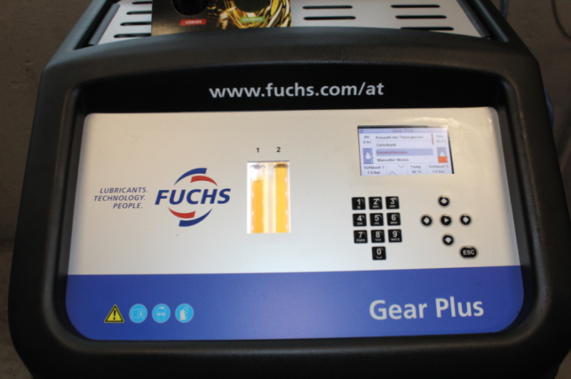 „Unser Getriebeöl-Spülgerät ist ein absolutes Premium-Gerät, das man nicht so einfach am Markt kaufen kann“, betont Reinhold Amschl, Vertriebsleiter bei Fuchs. In enger Zusammenarbeit mit Mahle wurde ein High-Tech-Produkt entwickelt, das den Ölwechsel und die Spülung vollautomatisch durchführt.