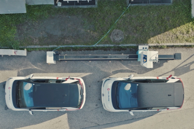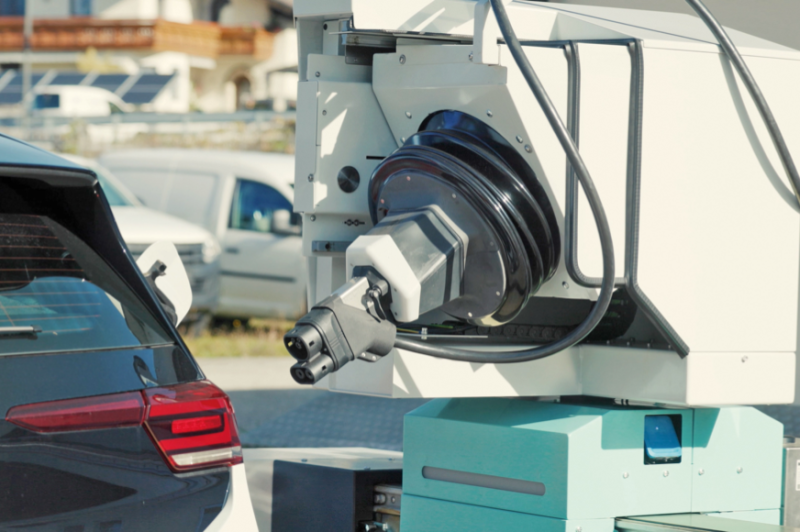 Für den „Charbo“ des Salzburger Unternehmens Alveri braucht es keine Veränderungen am Fahrzeug. Der Laderoboter bringt den Strom vollautomatisch zum Auto und bugsiert den Stecker in die Ladebuchse. So können vollautomatisiert auch mehrere Fahrzeuge hintereinander mit Fahrstrom versorgt werden. Das Unternehmen spricht vom weltweit ersten voll funktionstüchtigen Laderoboter, der bis zu 20 Ladestationen ersetzen soll.
