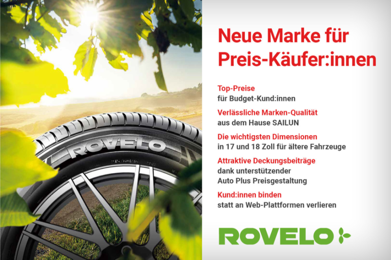 Wie eingangs erwähnt, wird der Preis-Aspekt dieses Jahr verstärkt bei der Kaufentscheidung ins Gewicht fallen. Insbesondere Kund:innen mit älteren Fahrzeugen sind auf der Suche nach Alternativen. Genau dafür bringt Auto Plus nun ROVELO Reifen in den wichtigen 17 und 18 Zoll Größen für das Budget-Segment. Während man für vier Reifen im Premium-Bereich bis zu € 1.200,- berappen muss, ist ein kompletter ROVELO Reifensatz bei rund € 250,- anzusiedeln. Damit haben die Händler-Partner ein unschlagbares Verkaufsargument. Zusätzlich bringt die Budget-Marke ROVELO viele neue potentielle Kunden auf die Webseite von meinereifen.at – und damit zum Händler-Partner.