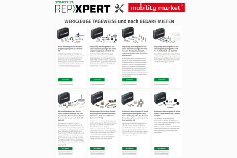 Mit dem richtigen Reparatur-Prozess in Verbindung mit dem passenden Ersatzteil unterstützt die Plattform Repxpert von Schaeffler die Werkstätten in ihrer täglichen Arbeit. Entscheidend ist dabei aber auch die Verwendung des passenden Spezialwerkzeuges. „Mehr als 800 Werkstätten nützen in Österreich die REPXPERT Werkstatt Plattform. Neben einem umfangreichen technischen Support werden hochwertige Spezialwerkzeuge angeboten“, erklärt Mag. Walter Birner, Gründer von Mobility Market. „Die Anschaffung solcher Werkzeuge zahlt sich für freie Werkstätten nicht immer aus, daher bietet Repxpert nun gemeinsam mit mobility market diese zur tagesweisen Miete an.“ Der Service ist vorerst nur in Österreich über www.repxpert.at aufrufbar.