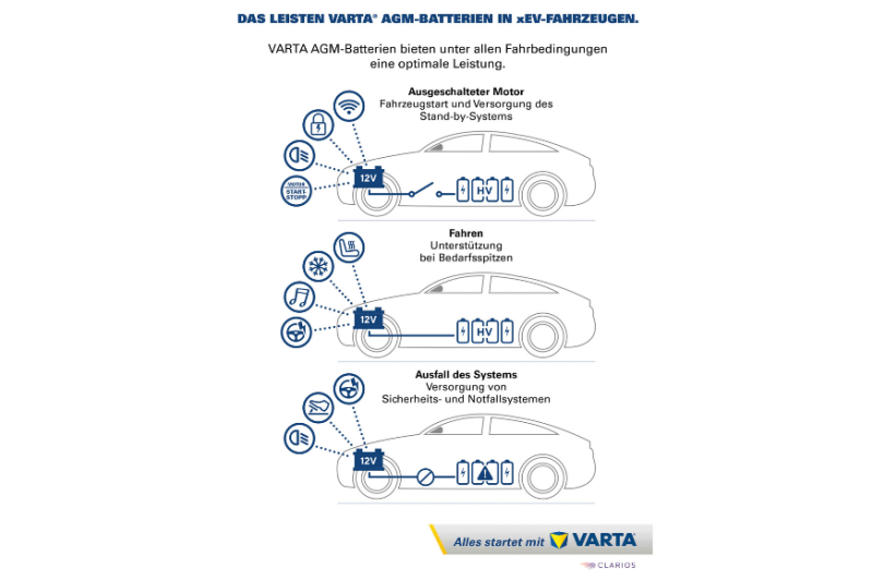 Bei Mehrfachbatteriesystemen kommt bevorzugt die AGM-Technologie zum Einsatz, denn diese eignet sich besonders für Fahrzeuge mit hohem Energiebedarf, das sind vorrangig Start-Stopp-Anwendungen und Elektroautos. Die AGM-Technologie verfügt unter anderem über eine hohe Zyklenstabilität, das heißt trotz vieler Lade- und Entladevorgänge bleibt die Leistung auf einem hohen Niveau. „Aufgrund ihrer langen Lebensdauer ist die AGM-Batterie sogar kosteneffizienter als herkömmliche -Batterien“, unterstreicht Dirk Göbbels, Director Product -Engineering EMEA bei Clarios.