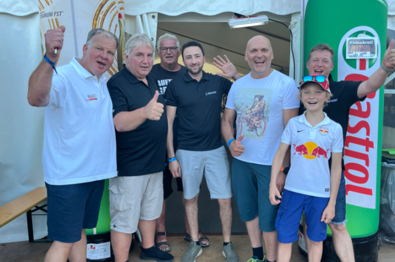 Training und Rennen konnten die Obereder-Gäste von der Red Bull-Tribüne nach Kurve 1 verfolgen. „Die schönste Tribüne am Red Bull-Ring, von der man 60% der Rennstrecke einsehen kann“, berichtet Gerd Bernd Lang, Castrol-Key-Account-Manager bei Obereder. Lang feierte beim Event auch sein 30-jähriges Branchenjubiläum: „Am 16.8.1993 hab ich bei Aral im Kfz-Ölgeschäft begonnen.“